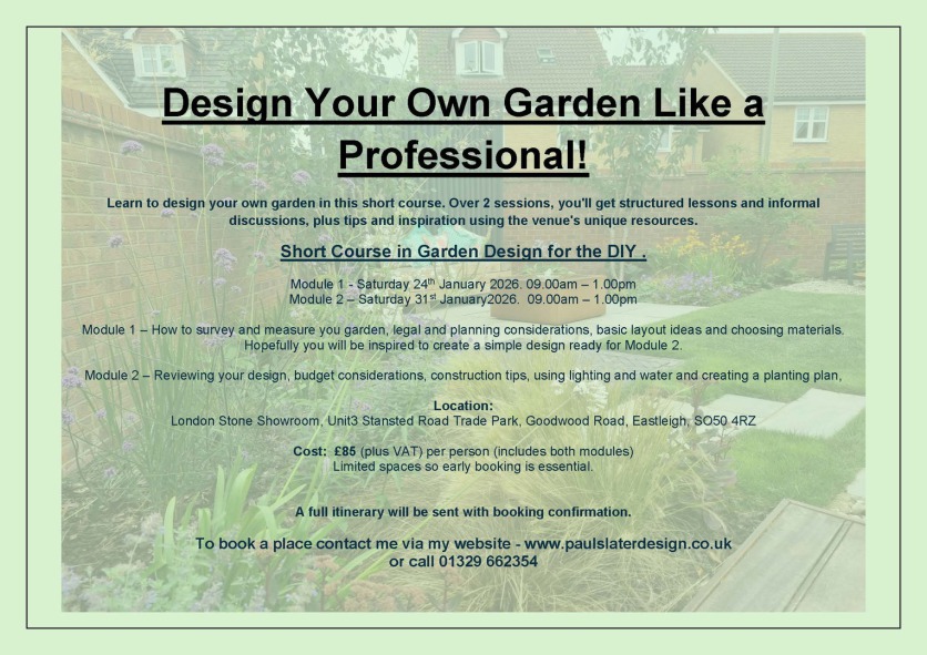 Due to the success of my Garden design workshop I have just booked more courses for this year.